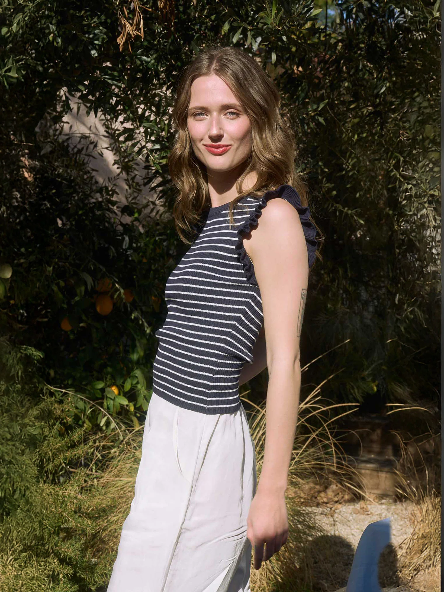 Soft and stylish, the Flutter Short Sleeve Stripe Knit Shirt adds a playful twist to your casual wardrobe. With fluttery sleeves and classic stripes, it offers a feminine take on a basic tee. Perfect with jeans, shorts, or tucked into skirts.