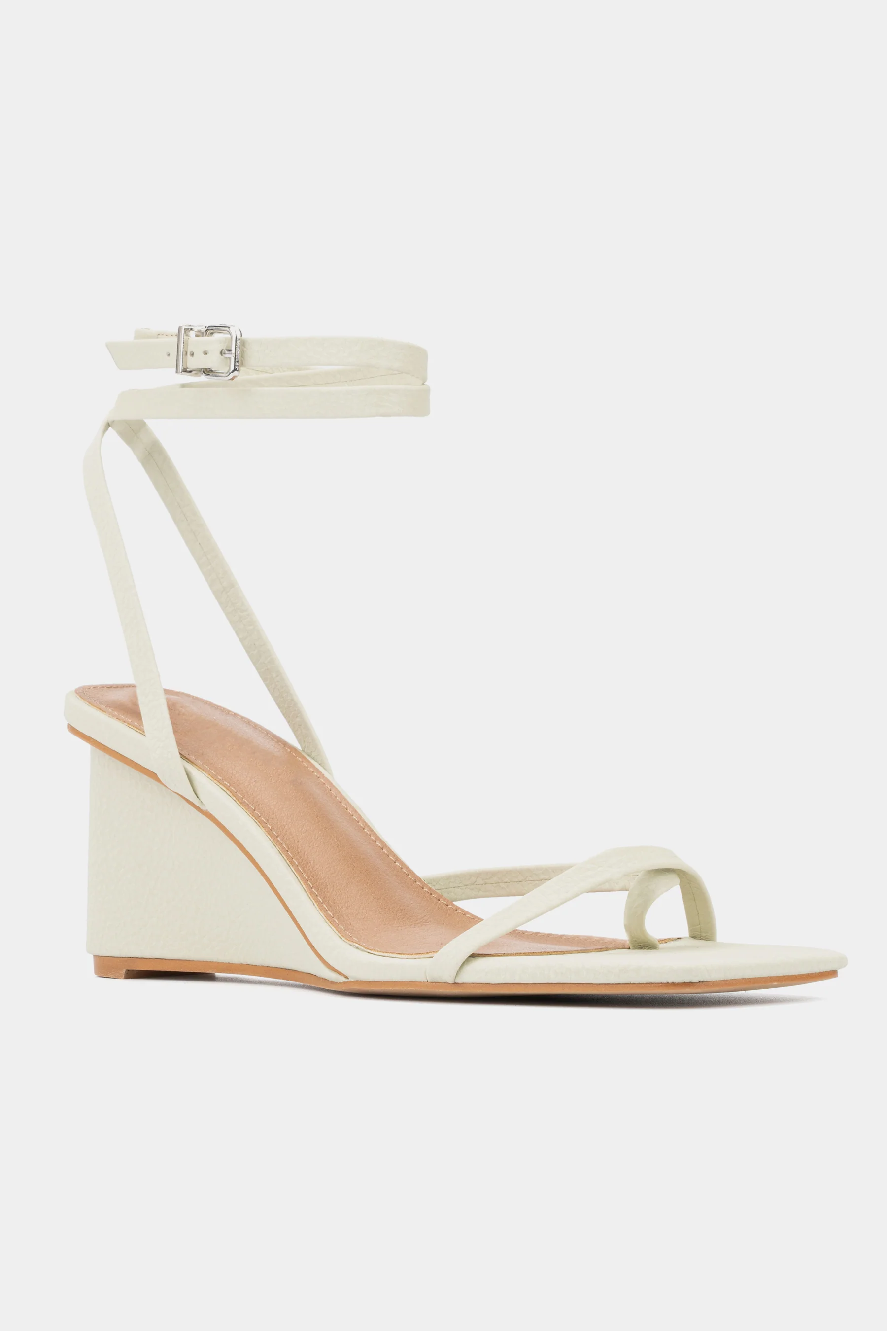 The cross-strap trend is the perfect way to show off your fashion sense with a distinctly modern touch! These wedge heels boast a stamped finish and a wrap strap design.
