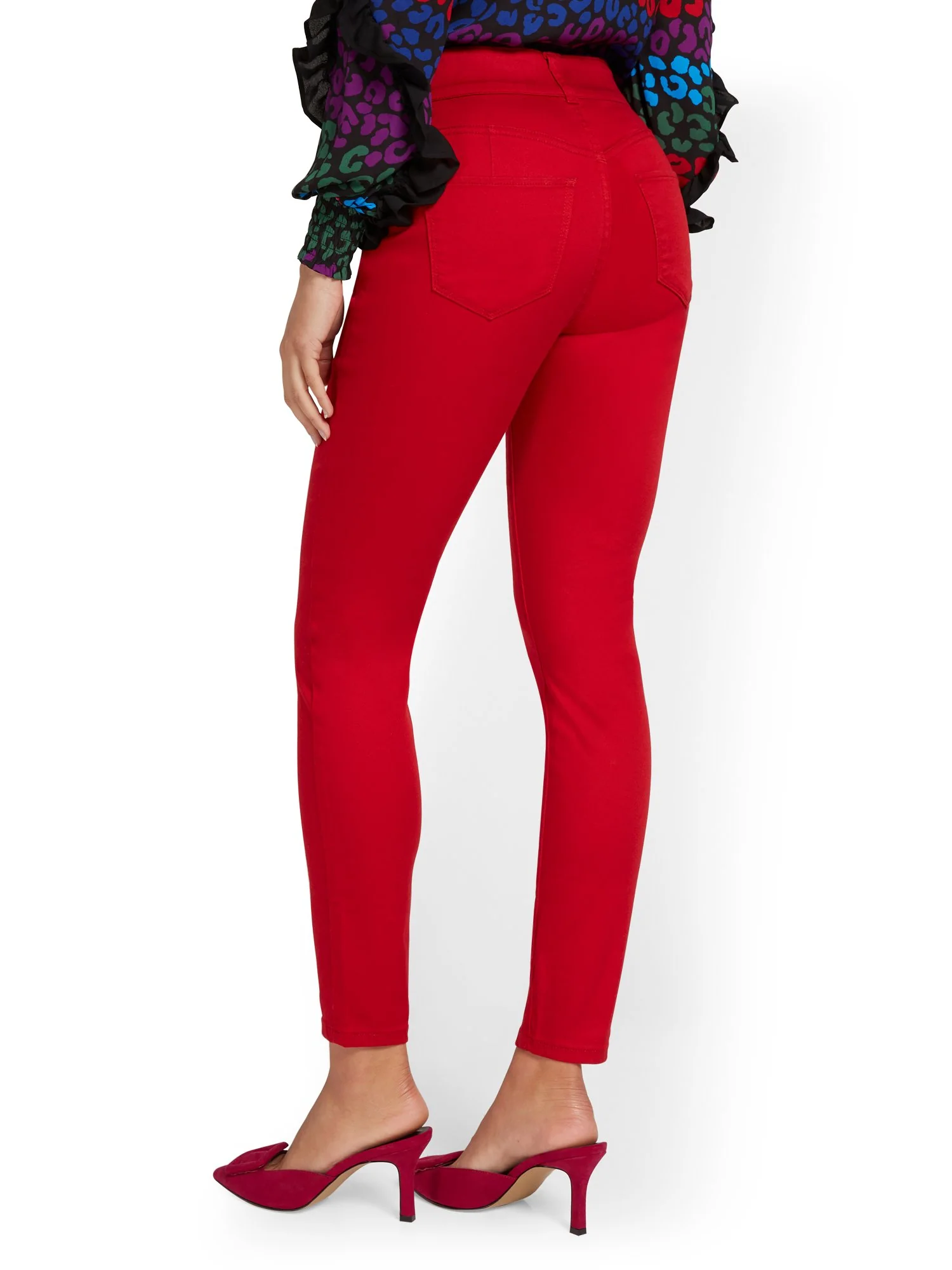 In a radiant red colorway, the classic skinny jean gets a bold upgrade. This style features a flattering high-waist and trendy ankle-length.
