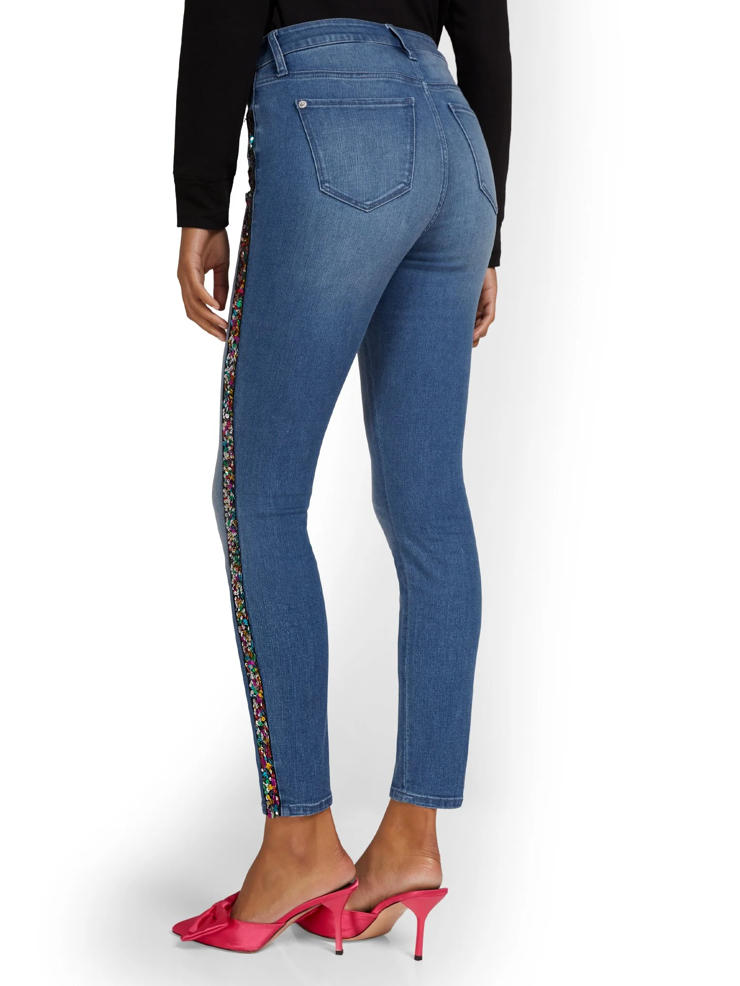 -70%High-Waisted Super-Skinny Rhinestone Stripe Ankle Jeans—