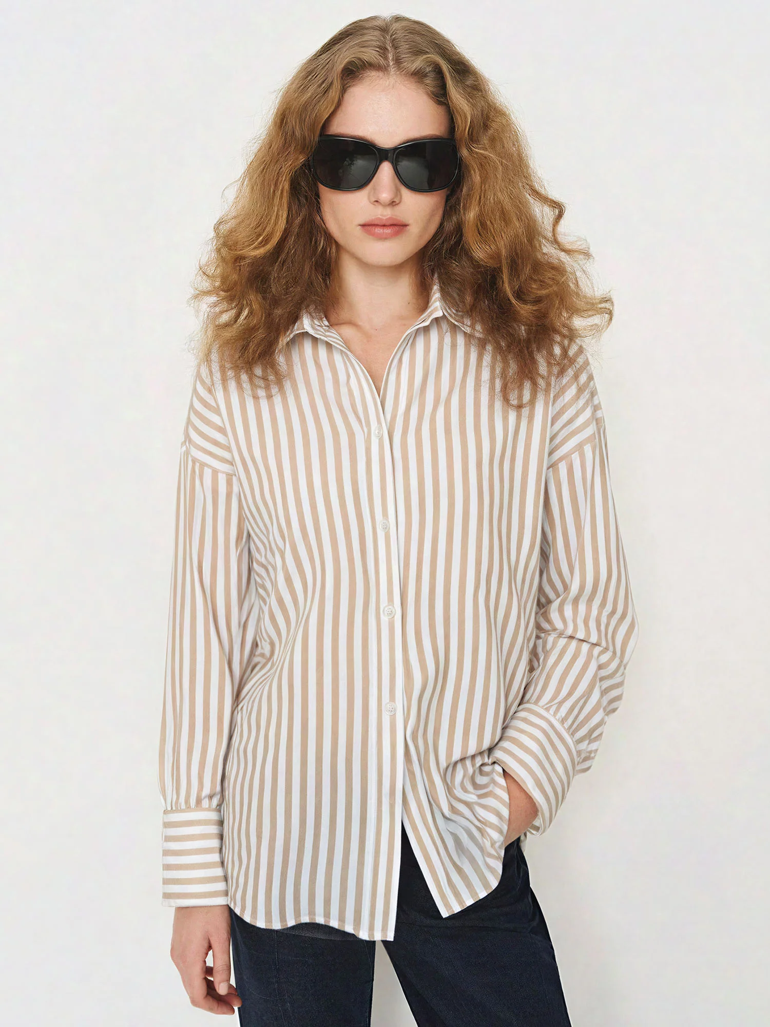 You'll love the added stretch for comfortable all-day wear, the tailored fit that creates a flattering silhouette, and the timeless vertical stripes that make this shirt endlessly versatile for any occasion.