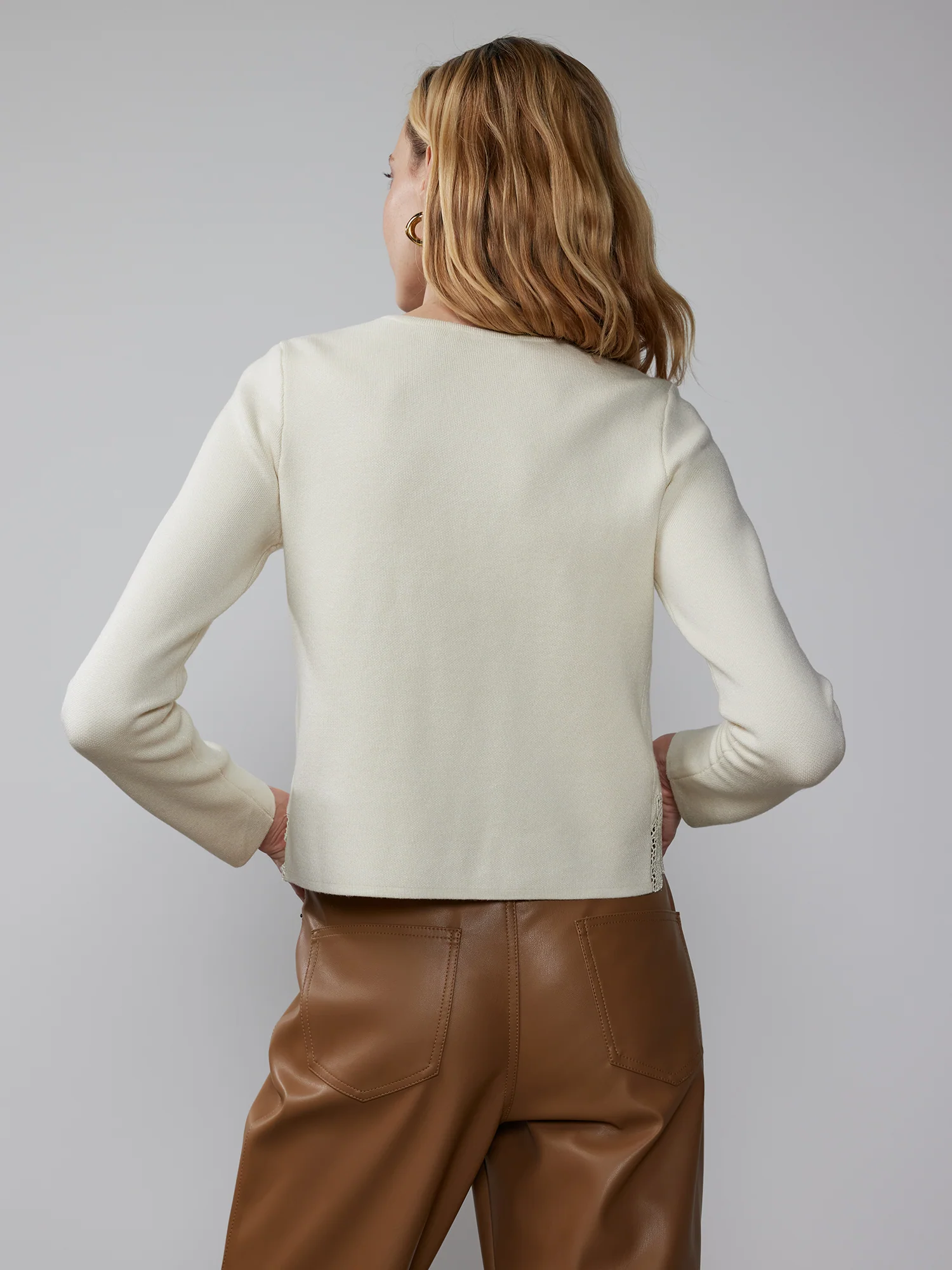 This cute cardigan features beautiful lace details on the front and hemline. It has a sexy v-neck along with polished long sleeves. With a self-tie closure on the front, this cardigan is cute as well as comfortable.