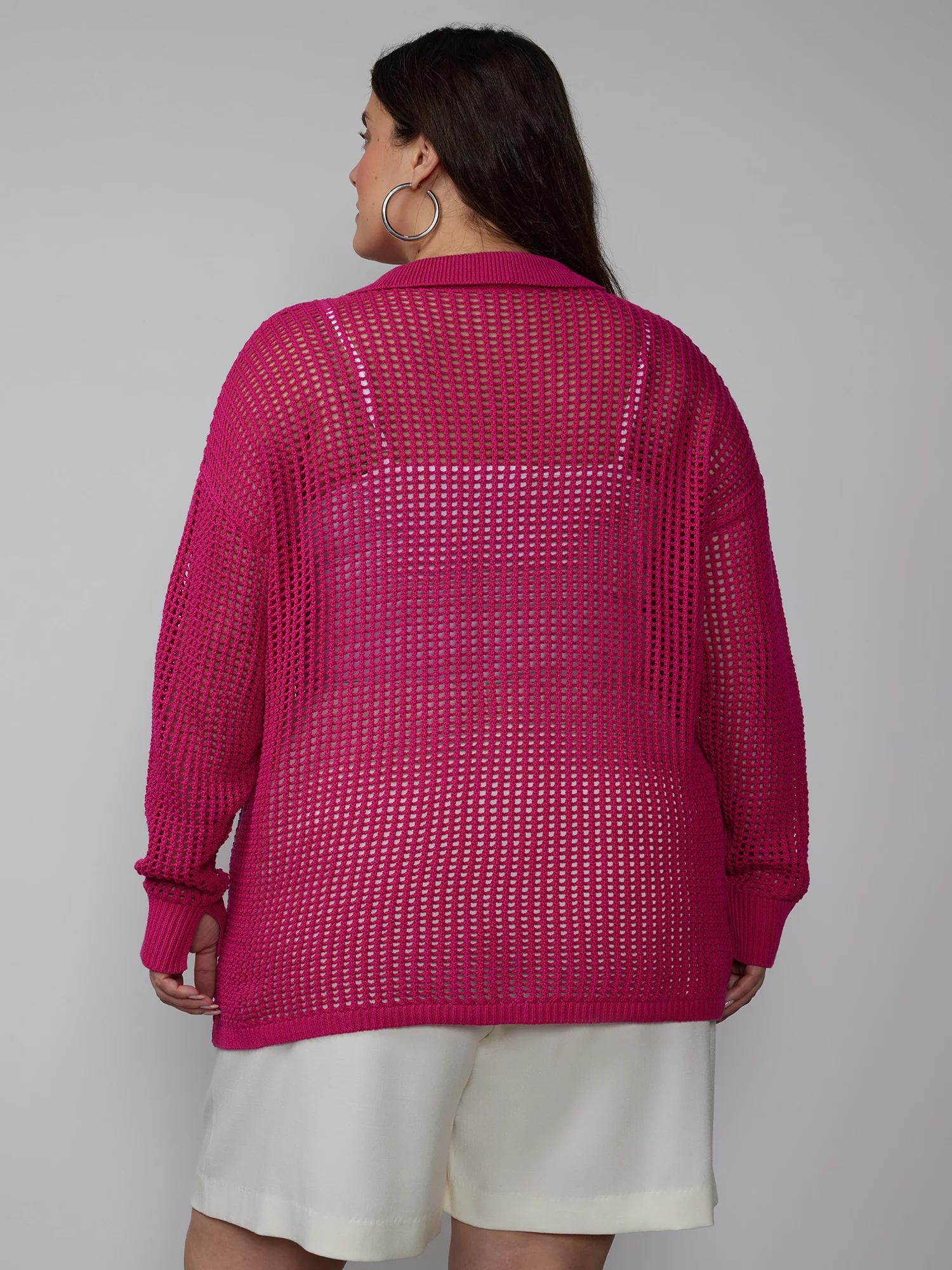 Stay modern and comfortable in this uniquely designed cardigan. It features long sleeves and a collar neck for ultimate comfort and style. The open stitch fabrication and ribbed cuffs add a touch of elegance, while the button front allows for easy wearability.