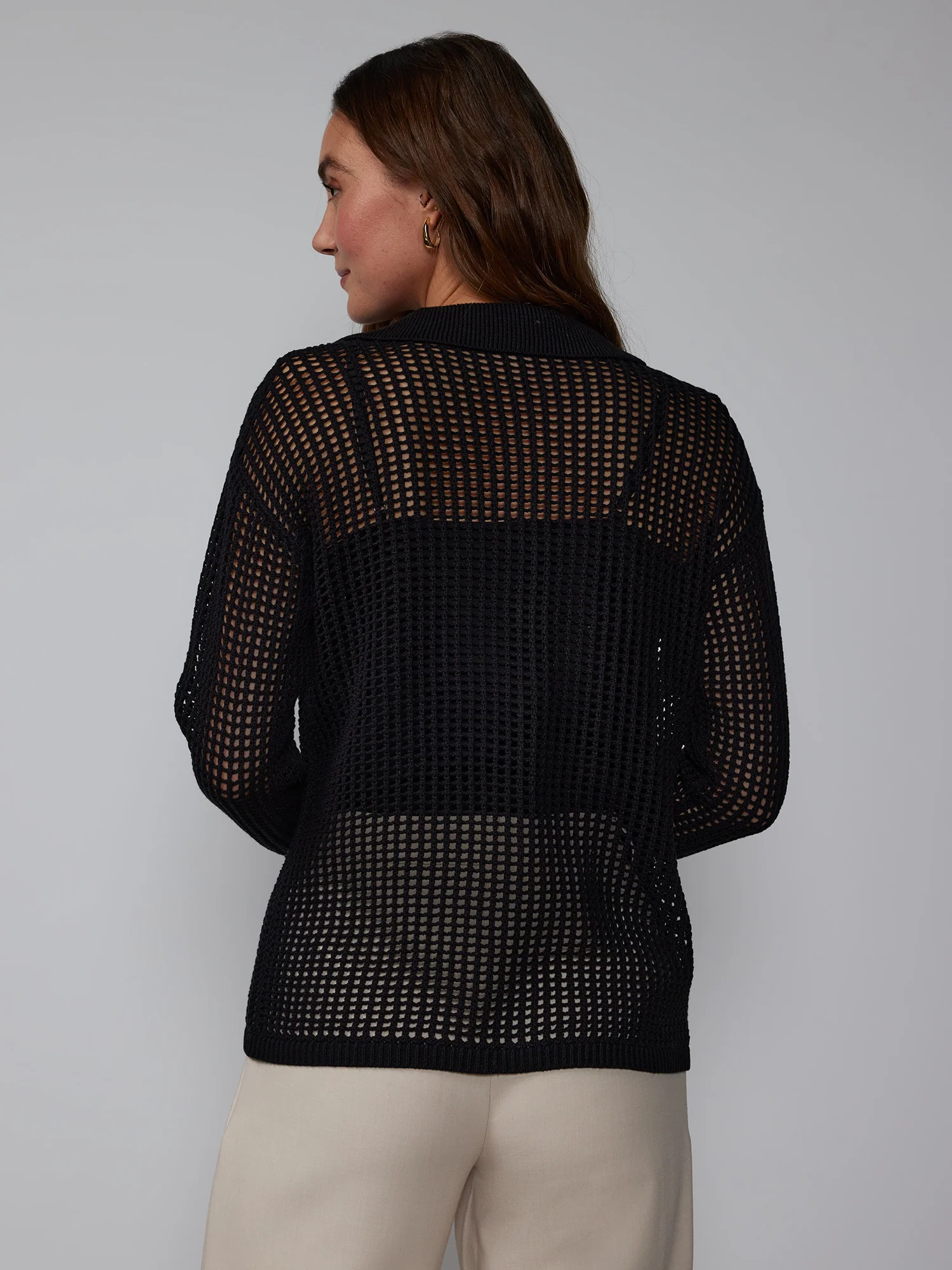 Open Stitch Collar Neck Cardigan